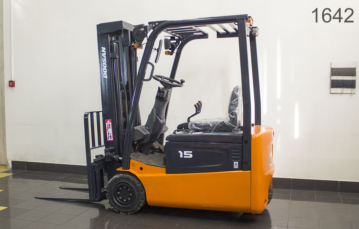 Электрический погрузчик Doosan Б/У с интентарным номером 1642 2009 года выпуска. Состояние - Хорошее. Имеет грузоподъемность 1500 кг. Гарантия: .